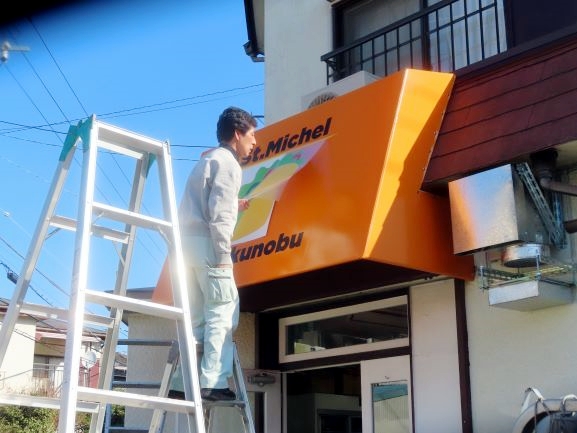 サンミシェル様 テント看板製作設置工事/飲食店 平塚にあるタコスでお馴染みのサンミシェル様のテント看板製作設置工事をやらせて頂きました。 閉店したお店を改装します。 前面の三角部分を綺麗に外しました。 枠を取り付けます。 テント生地をはります。 綺麗にはれたテントの上にカッティングシートでイメージタコスをはります。 可愛いカラーのタコス店が出来ました。サンミシェル様。ご依頼いただきありがとうございます。今後とも宜しくお願い致します。 お気軽にお問い合わせください メールフォームはこちら